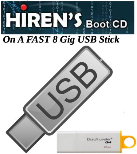 This bootable 8 Gig USB will allow you to boot Hiren's Boot CD from the USB.