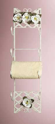 Magnolias bloom from the latticework on this charming Southern belle towel holder. Painted metal. 6" x 7 3/4" x 30" high.